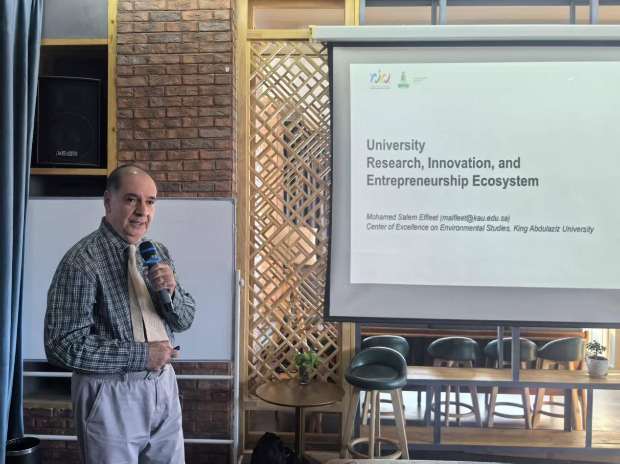 11月28日,中国科学院新疆生态与地理研究所第50期“科技交流与分享沙龙”顺利举行。本期沙龙特邀沙特阿拉伯阿卜杜勒·阿齐兹国王大学环境科学卓越中心(CEEs)穆罕默德·埃尔弗利特(Mohamed Elfleet)教授担任主讲嘉宾,作了题为“大学科研、创新与创业生态系统”的精彩报告。