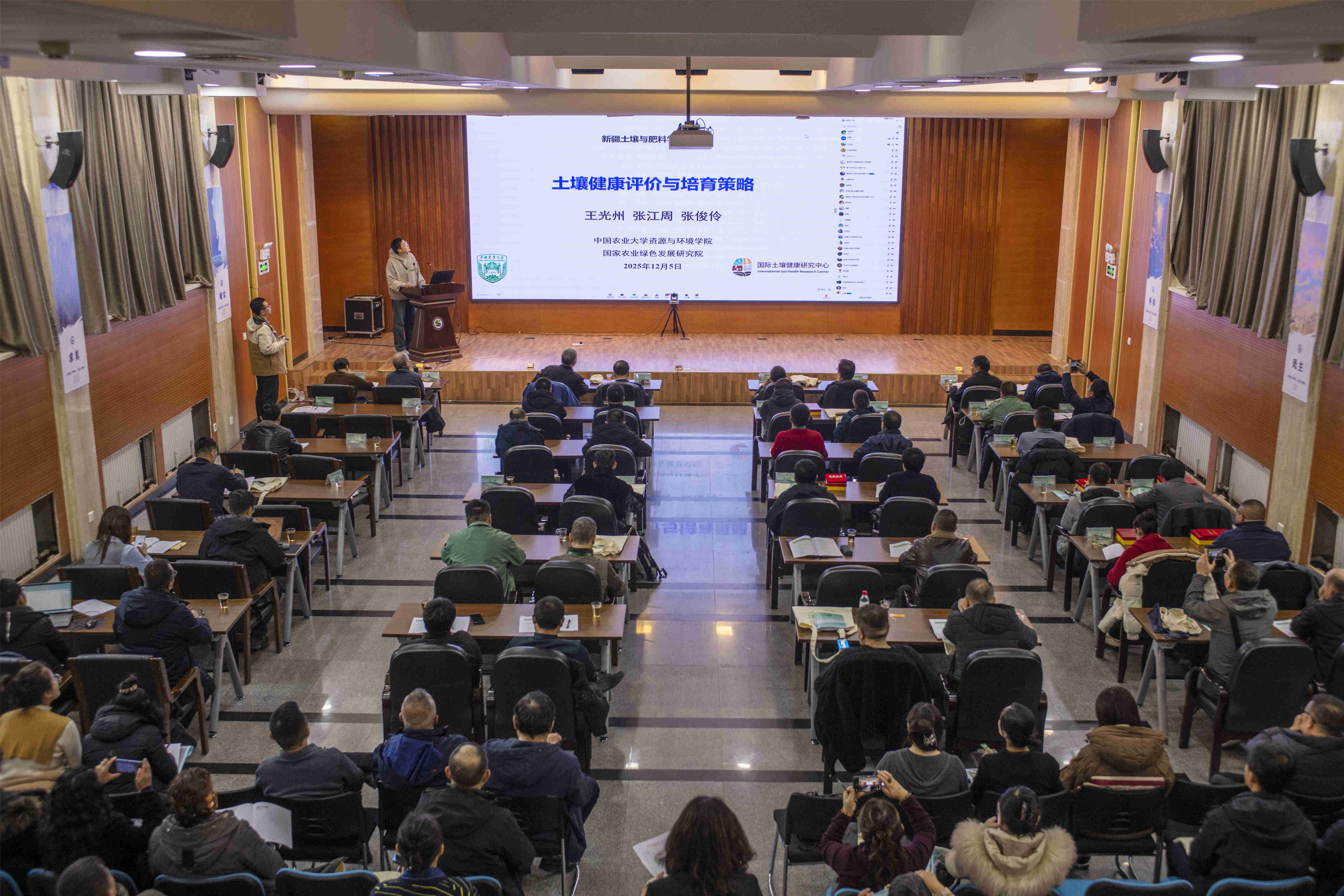 培训邀请国内知名高校、科研院所的9名专家授课。主旨报告环节,中国农业大学王光州副教授以《农田土壤健康评价与培育策略》为题,为学员们带来了一场前沿学术报告,介绍了土壤健康对于农业绿色发展的重要意义,阐述了当前土壤健康评价的问题、挑战与应对策略,为干旱区农业可持续发展提供了重要的研究思路。新疆生地所田长彦研究员作《新疆农业高产绿色发展的底层逻辑》报告,从国家粮食安全大背景引入,分析新疆农业的地理格局与生态环境,结合大量数据和实际案例,帮助学员深入了解新疆农业高产绿色发展的理论逻辑、实践逻辑。