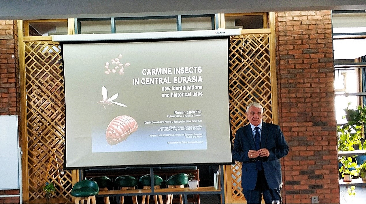 在随后的讨论环节,Roman Jashenko与参会人员就Porphyrophora属昆虫与宿主植物的关系、野外采集昆虫与人工组织培养的差异、Porphyrophora属昆虫资源在现代印染及生物医药领域的应用潜力等问题进行了充分交流。