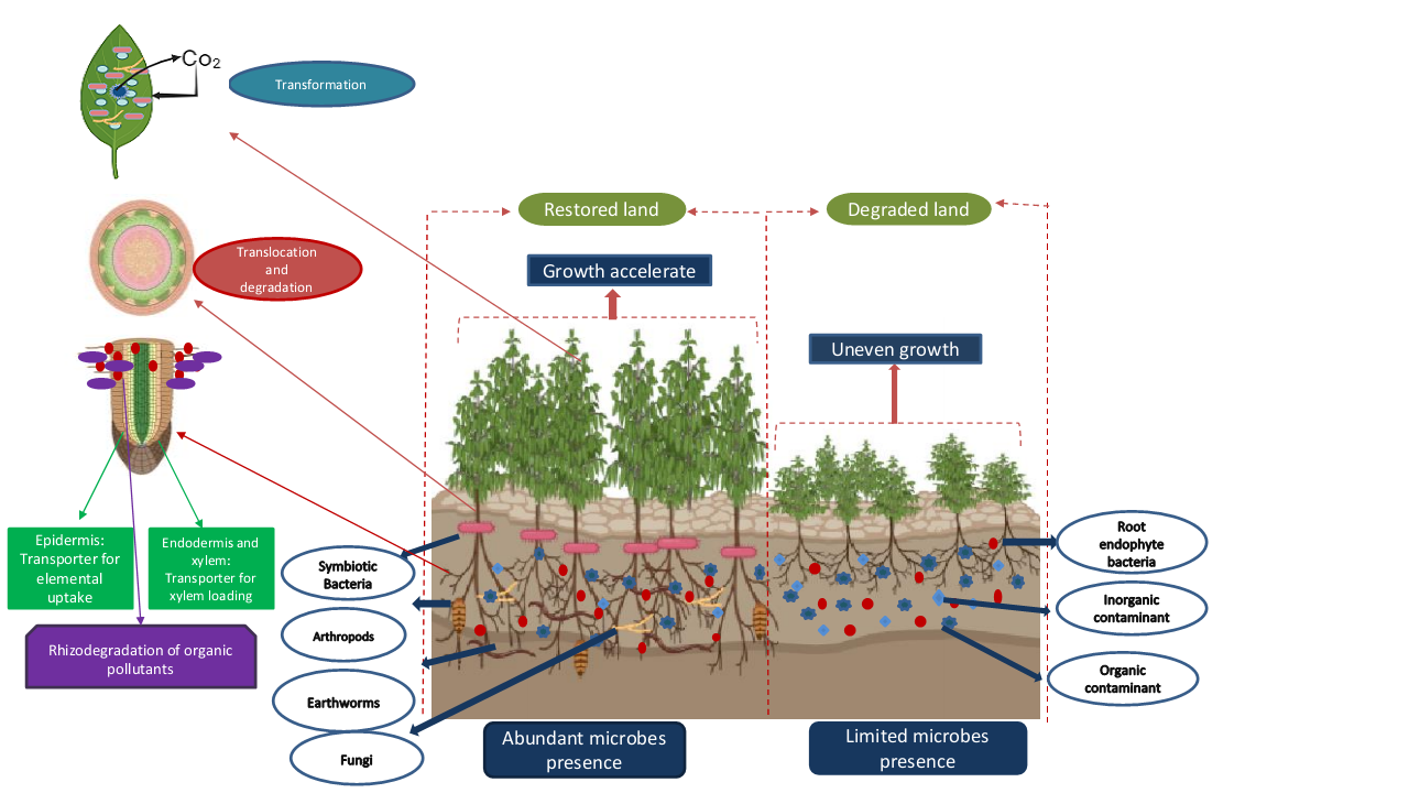 图2:恢复土地与退化土地中微生物与植物的相互作用