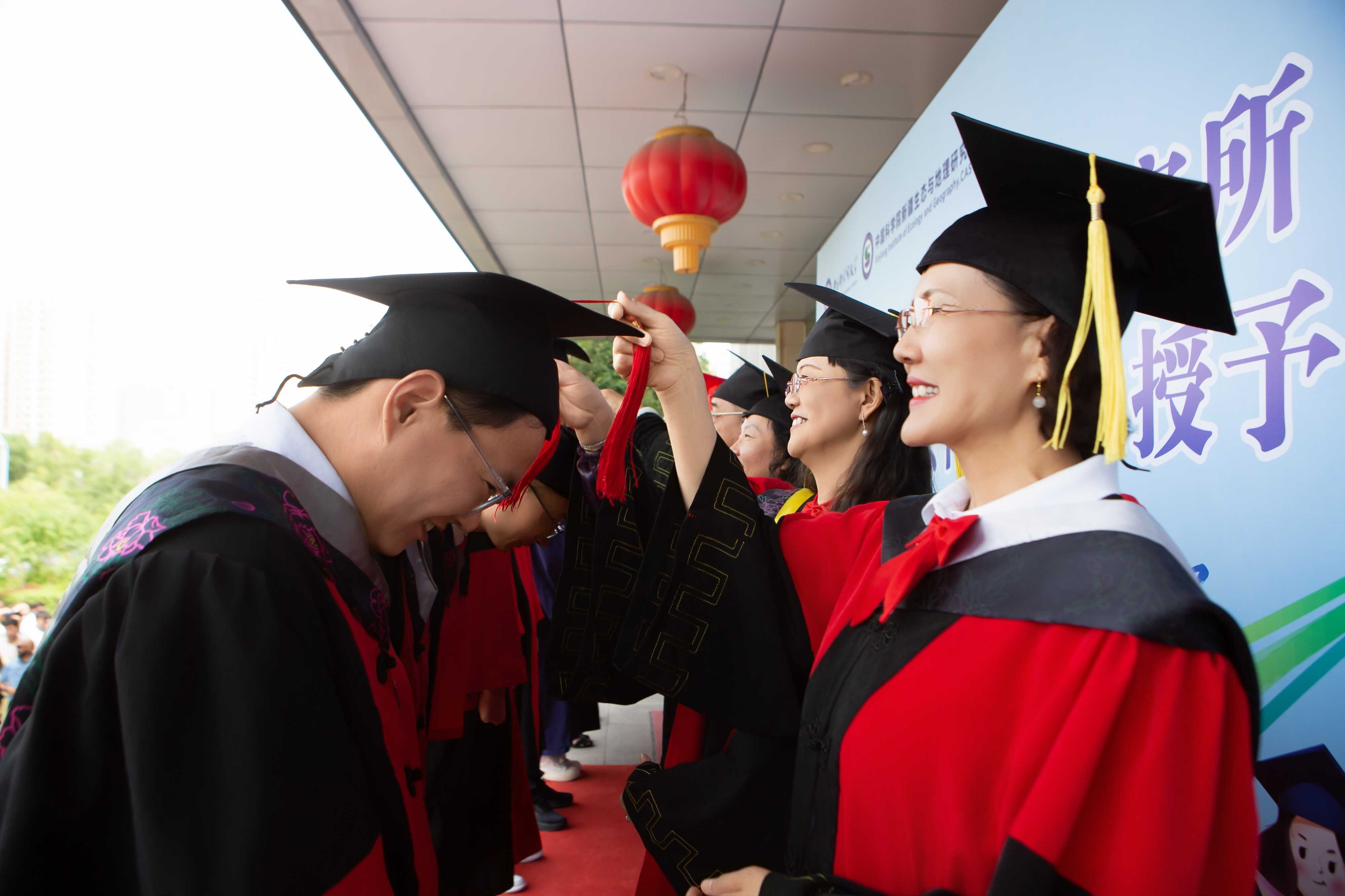 在庄重的学位授予仪式上,研究所领导及各专业导师为毕业生颁发毕业证书并拨穗。这一象征着"硕果累累"的传统仪式,寄托了对毕业生扎根边疆、建功立业的殷切期望。