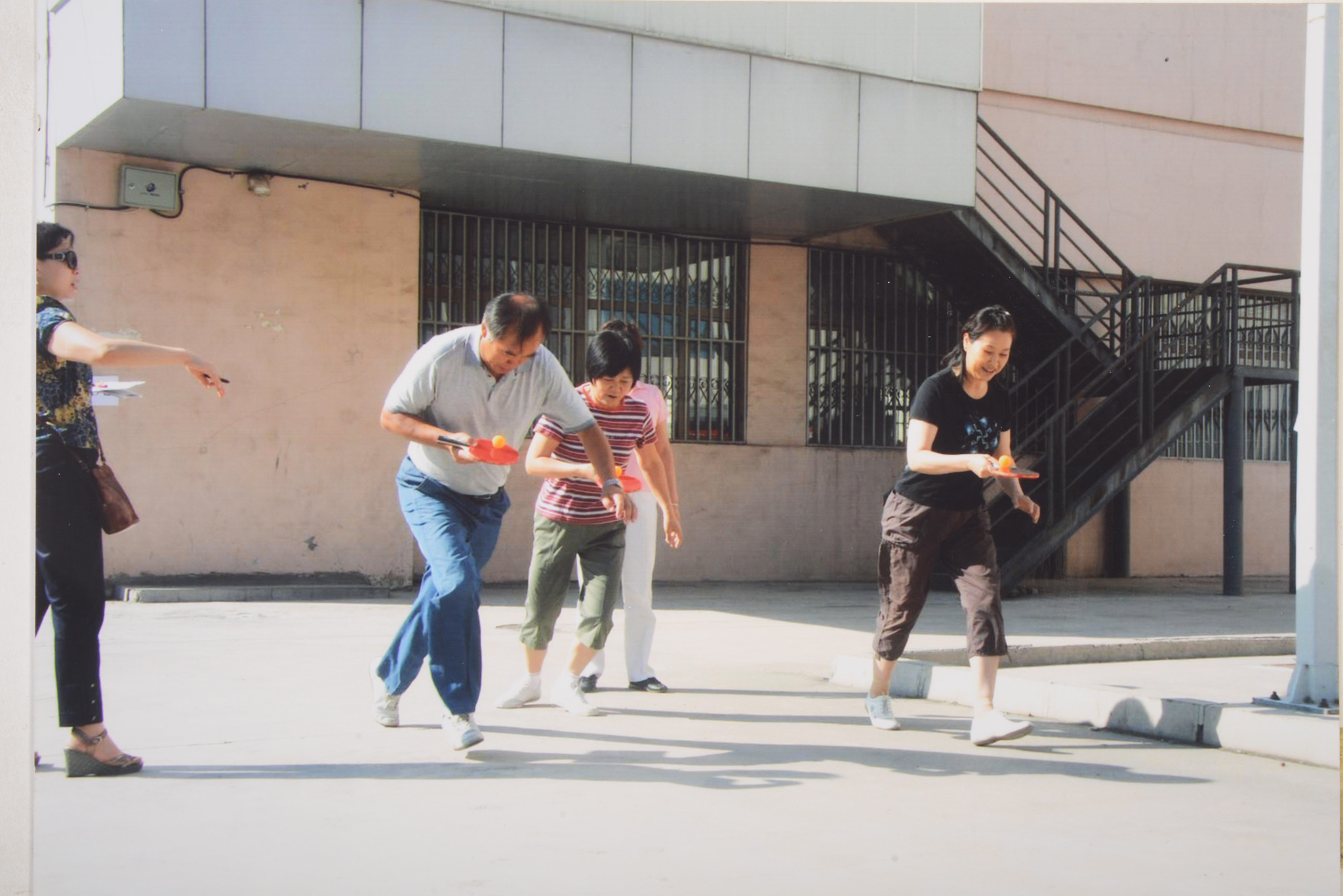 研究所运动会中运动员托举乒乓球跑步比赛(2009年)