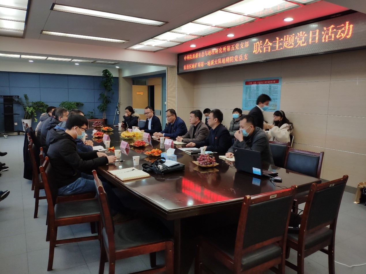 为持续加强基层党组织建设,丰富组织生活形式,提高组织生活质量,充分发挥党建引领作用,助推产学研深度融合。2021年3月8日下午,中国科学院新疆生态与地理研究所第五党支部与新疆地矿局第一地质大队地质勘查院党总支联合共建开展主题党日活动。会议在第一地质大队昌吉办公楼进行,中国科学院院士、中国科学院新疆分院院长肖文交应邀出席。