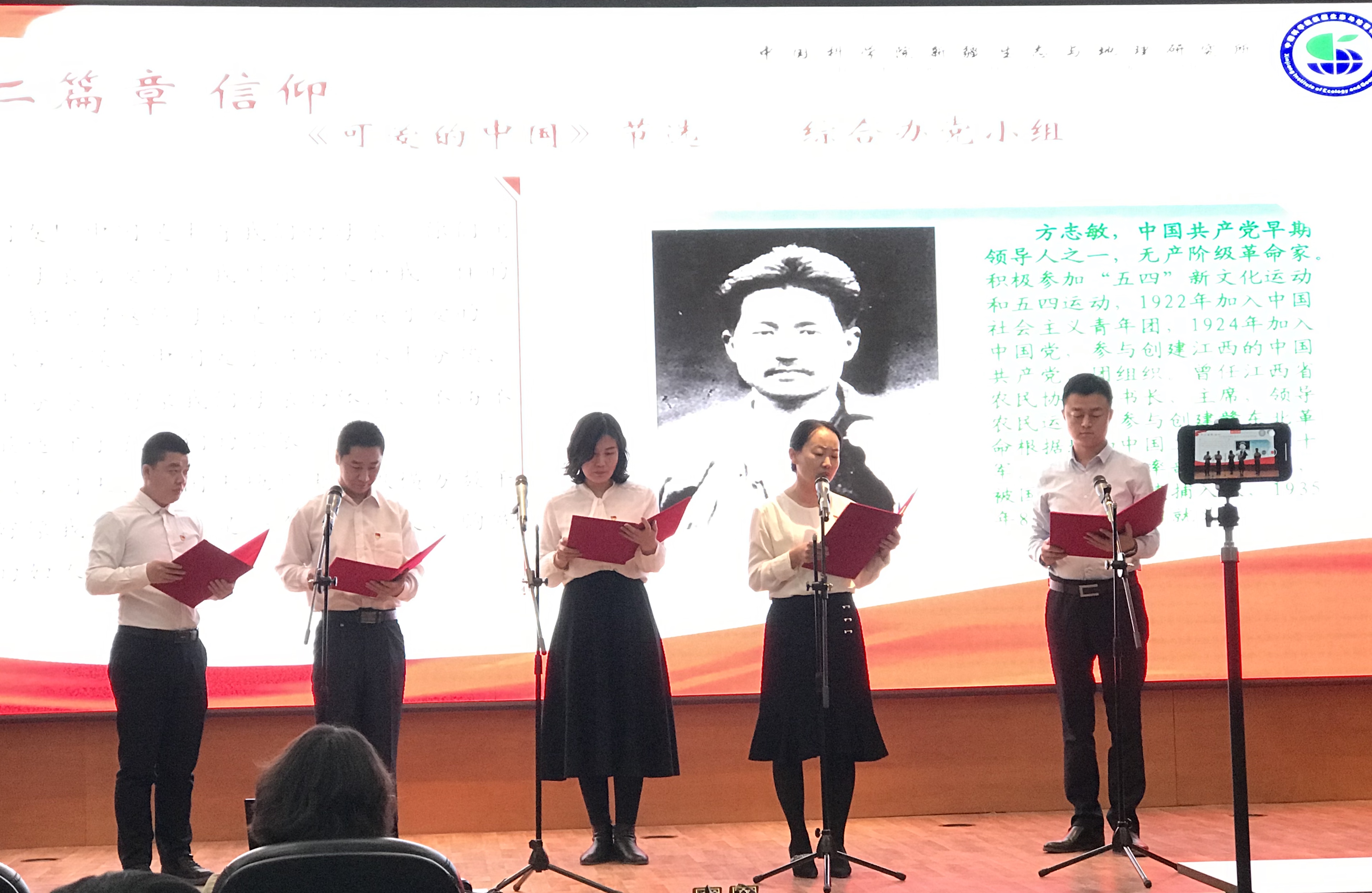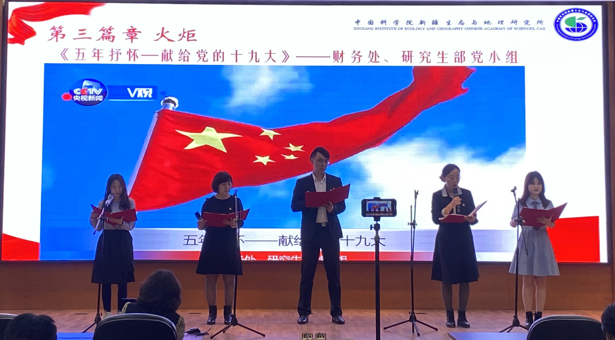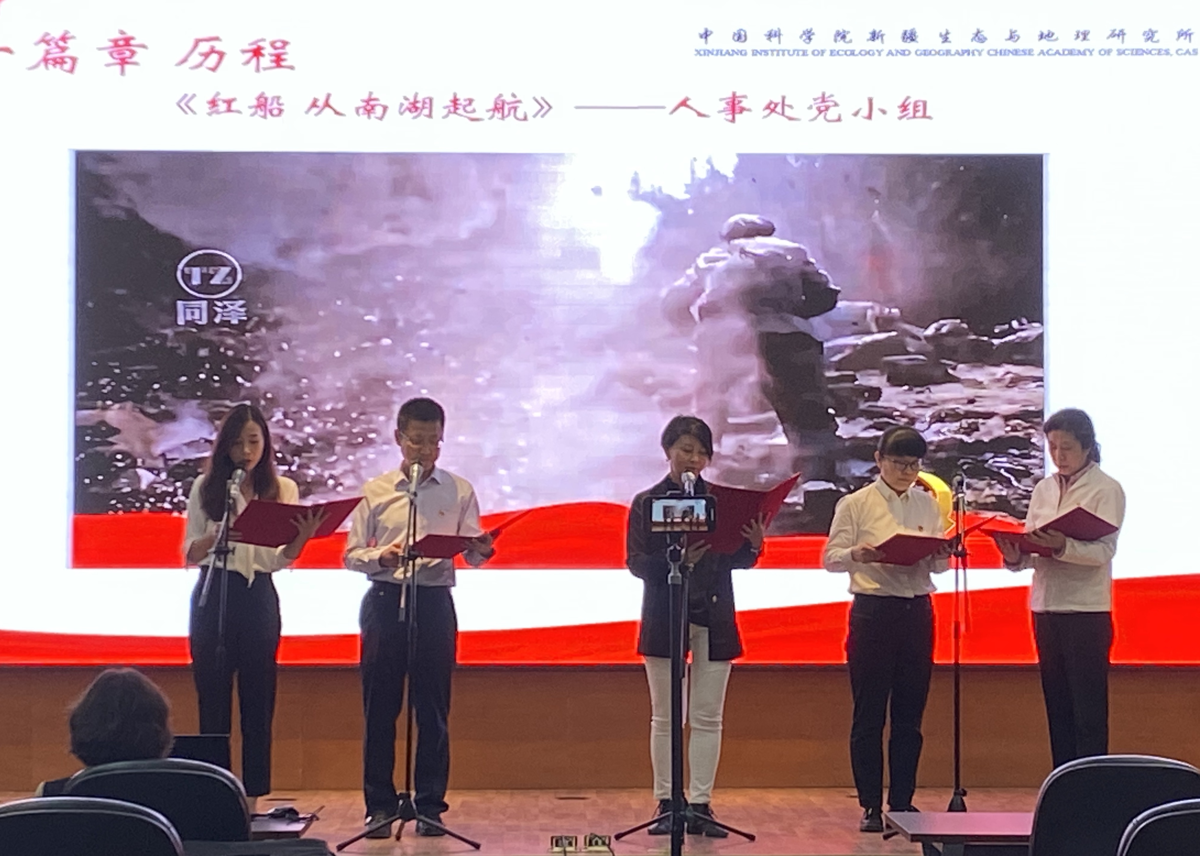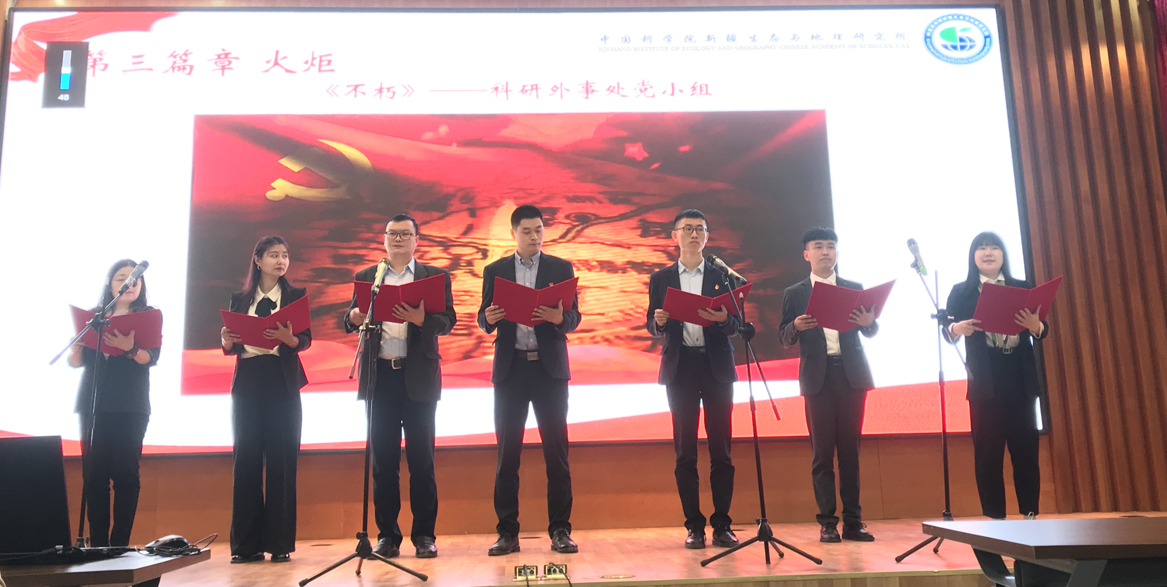 4月30日下午,中国科学院新疆生态与地理研究所第六党支部开展“奋斗百年路 启航新征程”学党史经典诗词朗诵主题党日活动。7个党小组通过观看党史纪录片《重生》及诵读党史诗歌的形式,以饱满的精神状态和极具感染力的表现,满怀感恩之心,重温中国共产党百年奋斗的恢弘史诗,展现了新疆生地所党员干部忠诚担当、爱党爱国的时代风采。