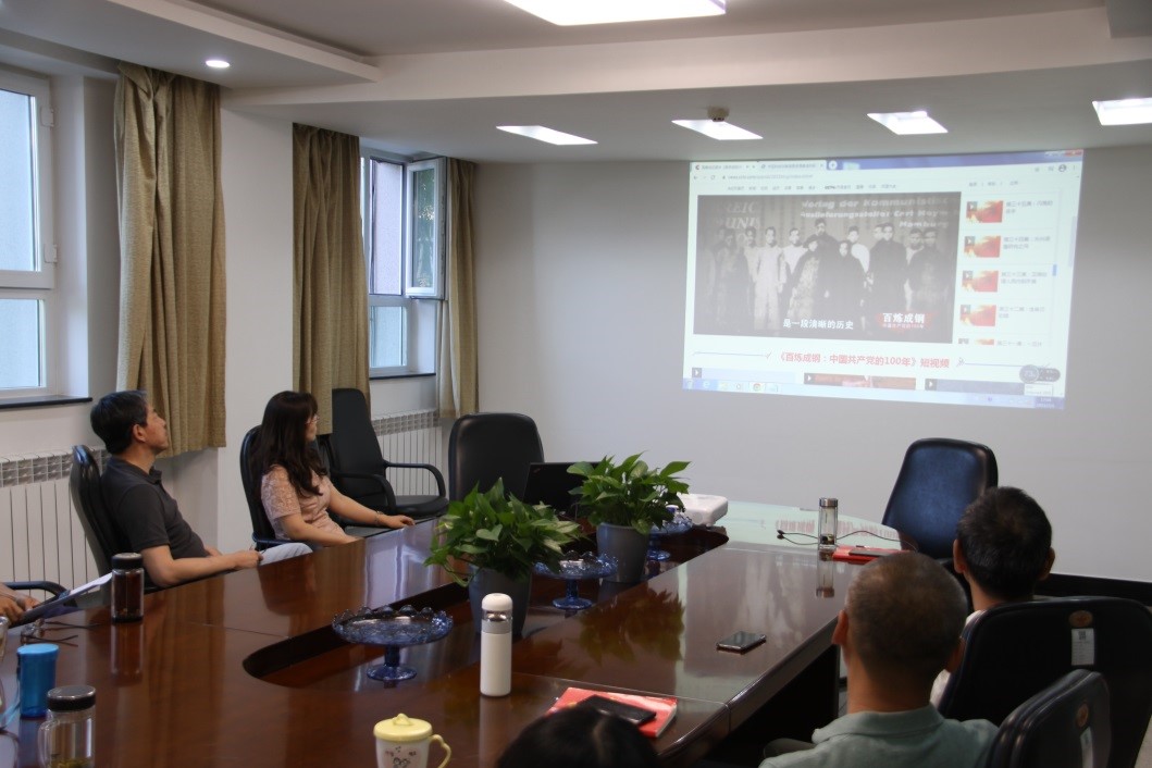 《百炼成钢:中国共产党的100年》是献礼建党100周年的重大主题创作,该片采取短小精悍的短视频形式,撷取中国革命、建设、改革、复兴历程中的100个重要事件,用100个历史故事反映出百年大党的光辉历程和伟大成就。会上,与会人员一同观看了纪录片第一集“亢慕义斋”、第二集“老渔阳里的秘密”、第三十五集“闪亮的名字”和第四十一集“历史转折”,认真学习党的百年发展奋斗史,感悟思想伟力、汲取奋进力量。