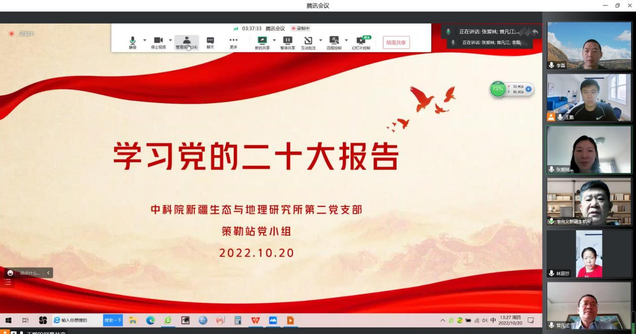10月20日上午,策勒站国家站站长曾凡江研究员主持召开策勒站党小组集体学习及座谈交流会(线上),集体学习完毕后,大家结合自身的工作和学习交流学习心得体会,策勒站全体师生及支撑保障人员近40人参会。