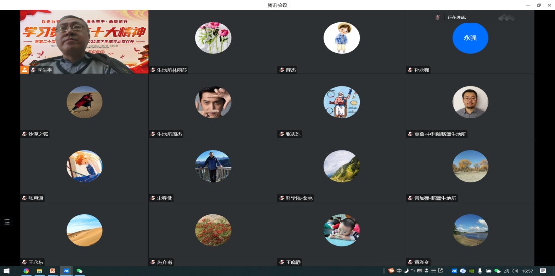 2022年12月16日,中国科学院新疆生态与地理研究所第二党支部以线上会议形式召开了“领会二十大精神要义,全面推动团队科研工作”主题党日活动。