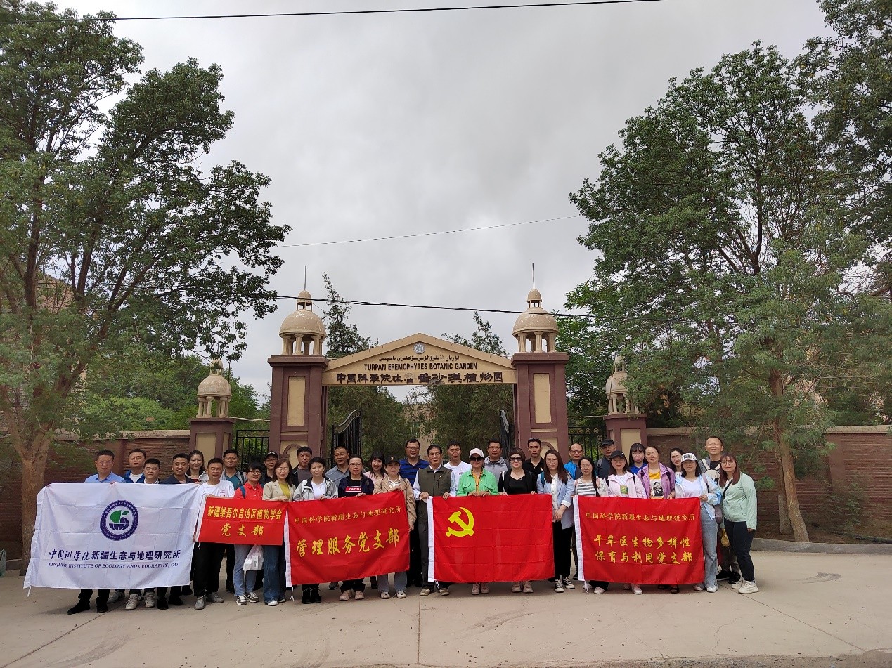 为深入开展学习贯彻习近平新时代中国特色社会主义思想主题教育,深化调查研究,2023年5月26日管理服务党支部与干旱区生物多样性保育与利用党支部在吐鲁番沙漠植物园联合开展“党旗插在野外台站、服务走进科研一线”活动。