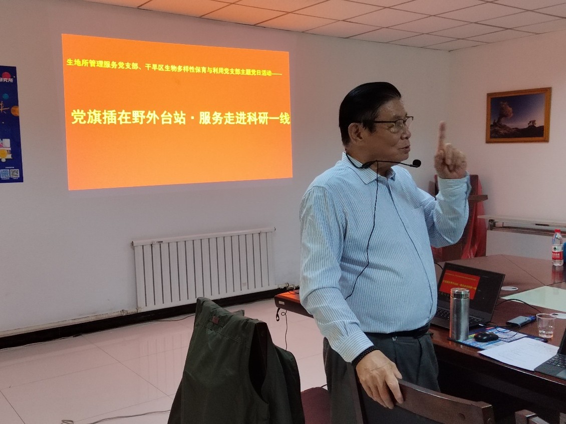 研究所副所长、现任吐鲁番沙漠植物园主任张道远研究员向全体党员详细介绍了伊犁-吐鲁番国家植物园建设进展,从布局规划讲到中长期目标;从两园的特点讲到未来的发展前景;从经费支持讲到土地证办理。使我们真正了解到研究所的重大布局以及背后科研人员付出的努力。