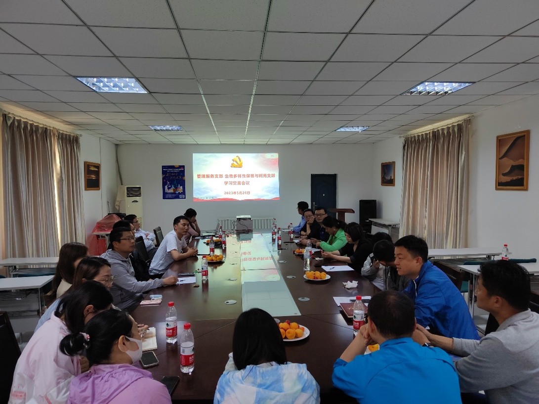 管理服务党支部科研处、人事处、财务处、办公室负责人与骨干成员与干旱区生物多样性保育与利用党支部到会全体党员开展座谈交流,主要围绕重大项目介绍及科研进展、人才分类评价与人才培养、安全工作要点与财务监督等方面开展交流解答,两支部党员一致认为此类交流活动可长期开展,进一步加深各部门与科研人员的相互了解,提高工作配合度助力研究所发展。