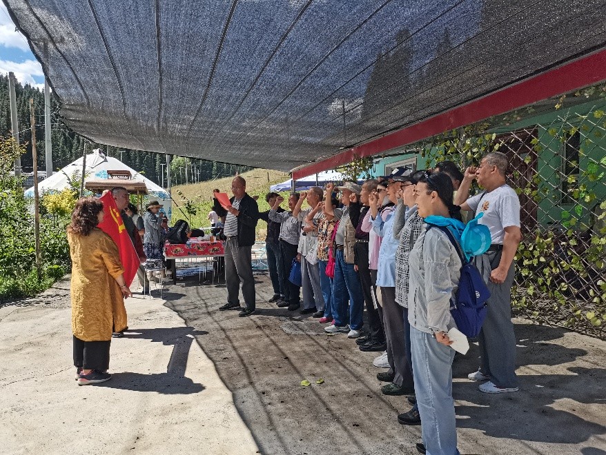 全体人员前往乌鲁木齐县开展了丰富多彩的主题党日活动。离退休干部党员一起学习了习近平总书记在《求是》杂志发表的重要文章《加强基础研究 实现高水平科技自立自强》、中国科学院党组在《求是》杂志发表的文章《筑牢高水平科技自立自强的根基》、侯建国院长在《人民日报》发表的署名文章《努力抢占科技制高点 加快实现高水平科技自立自强》。党总支部书记潘涛带领全体离退休党员重温入党誓词。老同志们载歌载舞、共话夕阳,大家纷纷表示要进一步坚定理想信念,退休不退色,为研究所发展献计出力。