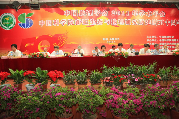 7月24日,中国科学院新疆生态与地理研究所喜迎建所50华诞。同日,中国地理学会2011学术年会召开。来自中国科学院、北京大学、南京大学、香港大学、德国科隆大学、加拿大滑铁卢大学、国际地理联合会、美国地理学家协会等国内外科研院校的千余名地理、资源与环境领域的专家学者汇聚一堂参加会议,共同庆祝新疆生地所建所50周年。自治区人大常委会副主任杜秦瑞、国务院参事、中国地理学会理事长刘燕华、自治区副主席靳诺、中科院院士郑度、刘昌明、陶澍出席庆典会议。