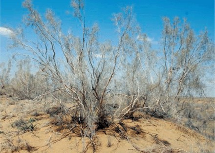 Tamarix shrubs are thriving in China's Gubantonggut Desert, but the soil itself may be socking away far more CO2 at night.