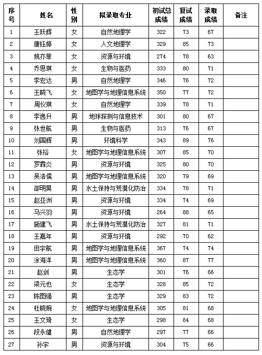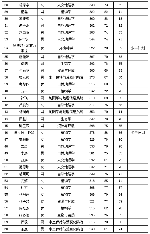 经初试、复试和政审等环节考核考察,新疆生态与地理研究所确定拟录取王跃辉等72人为我所2020年硕士研究生,具体名单如下: