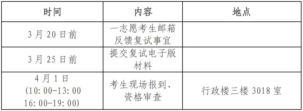 1.复试分组、具体时间、地点等后续将在报到时通知考生
