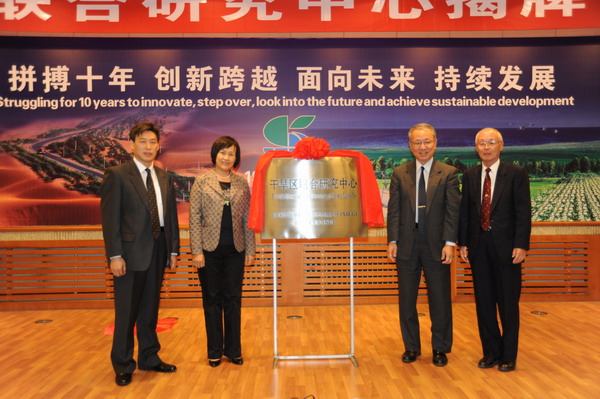 日本静冈大学校长助理太田慎一教授、日中友好协会副主席大石惇教授、新疆维吾尔自治区外办副主任李萍、新疆生地所副所长雷加强为该联合中心揭牌。