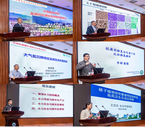 会上,自治区天池英才计划特聘专家西北工业大学郝占庆教授、北京师范大学陈晋教授、中国科学院城市环境研究所俞慎研究员、中国农业大学刘学军教授、中国科学院沈阳应用生态研究所郝广友研究员和西北工业大学王云云副教授分别作了题为“大型固定样地及其对长期生态学研究的意义”、“生物土壤结皮的水化光谱响应及应用”、“抗菌药物复合污染下的沉积物氮循环”、“大气氮沉降时空分布特征及其生态环境效应”、“水力结构对树木生产力和抗逆性的影响及其生理机制研究”和“被子植物有性繁殖特征的时空格局及生态适应机制”的报告。特聘专家从不同的角度介绍了自身的研究方向和亮点工作,并阐述了未来在干旱区开展相关研究的思路。论坛由新疆生地所科研处处长周晓兵研究员主持,研究所科研人员和研究生参会。