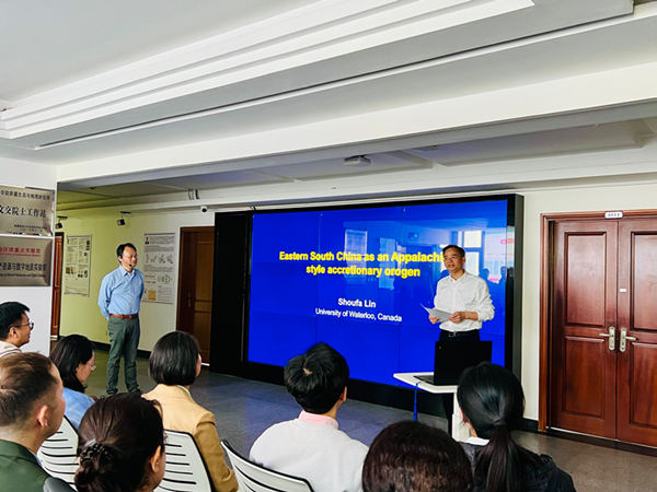4月24日,应肖文交院士邀请,加拿大滑铁卢大学构造地质学家Shoufa Lin教授来到中国科学院新疆生态与地理研究所为师生们作了题为“Eastern South China as an Appalachian-style accretionary orogen”的精彩学术报告。此次报告在矿产与资源中心四楼大厅举行,并进行了线上同步会议。