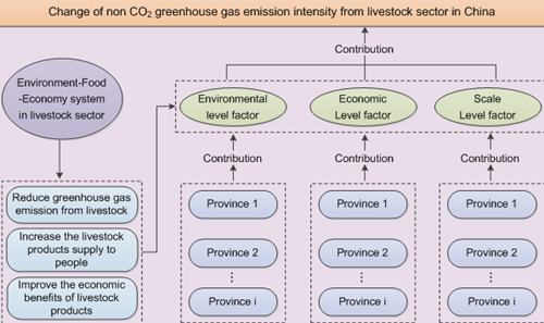 该研究为如何处理好畜牧业减排与食物供给和经济发展之间的复杂关系提供了新思路。本文的研究方法也适用于不同尺度区域的畜牧业温室气体减排研究。研究成果以Decomposition of factors affecting changes in non-CO2 greenhouse gas emission intensity of China's livestock sector based on the concept of“environment–food–economy”为题发表在Science of The Total Environment期刊上。