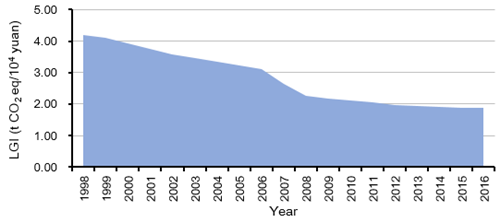 针对这一科学问题,中国科学院新疆生态与地理研究所杨德刚研究员团队,从畜牧业“环境—食物—经济”综合视角构建了我国与其各省畜牧业之间非CO2温室气体排放强度变化的联动分解框架,将驱动全国排放强度变化的影响因素解释为各省的环境水平(单位畜禽食物的非CO2温室气体排放量)、经济水平(单位畜牧业产值的畜禽食物投入量)和规模水平(畜牧业产值占全国畜牧业产值的比重)三种因素,并运用LMDI方法量化分析了1998-2016年各省三种驱动因素的具体贡献及其作用机制。
