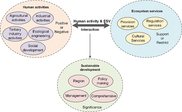 图1. 框架图 人类活动与新疆生态系统服务价值、可持续发展之前的相互关系