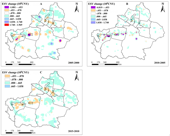 在干旱区,人类活动对生态系统服务造成的影响尤为明显,同时,生态系统也对人类社会发展造成了一定的约束。当前对生态系统服务及其人为影响因素的研究更多是考虑单向的、单一指标的,较少采用多指标综合,考虑双向间的影响。新疆是典型的干旱区、生态脆弱区,由于其脆弱性和敏感性,更容易受到人类活动的影响。新疆生态系统服务价值(ESV)及其与人类活动相互作用的研究,对制定生态政策,加强新疆生态系统服务管理,促进区域可持续发展具有重要意义。
