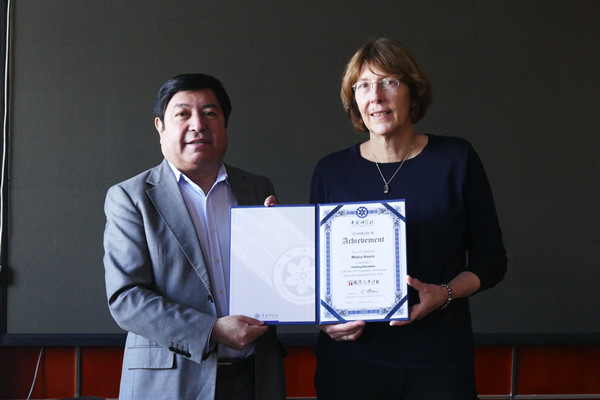 Carina Hoorn教授在新疆生地所工作期间被授予中科院“国际人才计划”证书