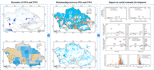 相关成果以“Rapidly declining surface and terrestrial water resources in Central Asia driven by socio-economic and climatic changes”为题发表在Science of the Total Environment。该研究得到国家自然科学基金项目资助。