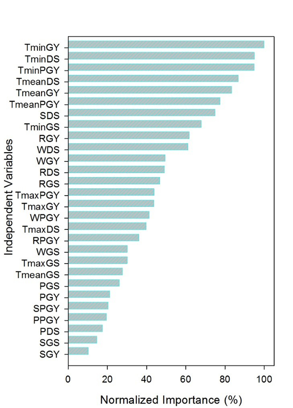 各气候因素影响天山雪岭云杉固碳能力的重要值