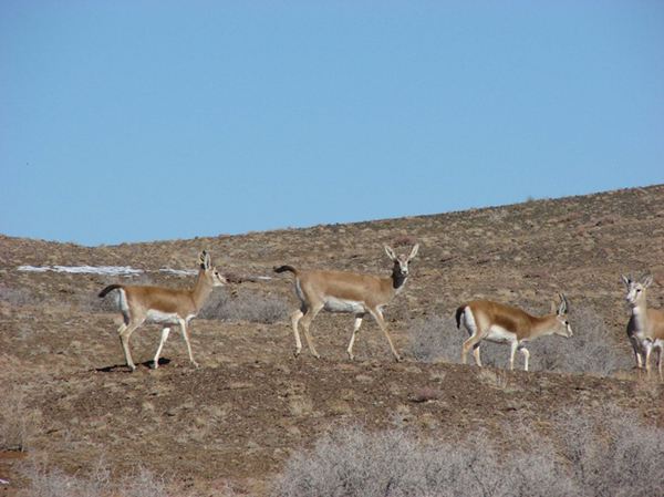 针对这一问题,中国科学院新疆生态与地理研究所荒漠与绿洲生态国家重点实验室杨维康研究员团队联合加拿大卡尔加里大学以及葡萄牙科英布拉大学以一种具有较低性二态(体重相差23.5%)的荒漠有蹄类动物鹅喉羚为研究对象,重点研究鹅喉羚雌雄两性在生境选择和行为时间分配的差异,以及这种差异是否导致其同性聚群。