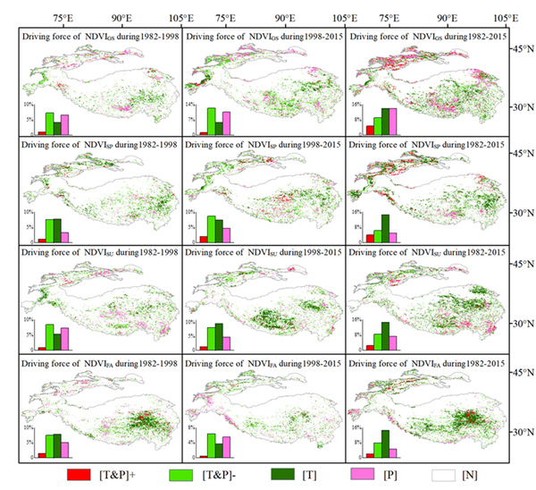 图2 1982-2015年HMA生长季(GS)、春季(SP)、夏季(SU)和秋季(FA)植被动态驱动因素分析。