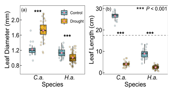 相关成果分别以:“Multi-level physiological and morphological adjustment of Haloxylon ammodendron related to groundwater drawdown in a desert ecosystem”; “Contrasting responses of two C4 desert shrubs to drought but consistent decoupling of photosynthesis and stomatal conductance at high temperature”为题发表在Agricultural and Forest Meteorology和Environmental and Experimental Botany。论文第一作者为新疆生地所硕士研究生冯晓龙,该研究得到国家自然科学基金、上合组织国际科技伙伴计划等项目的支持。