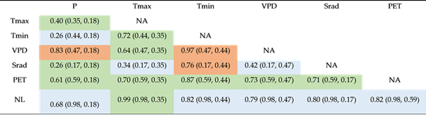 图2. 选择的解释因子与新疆林草植被CSC的关系热图。