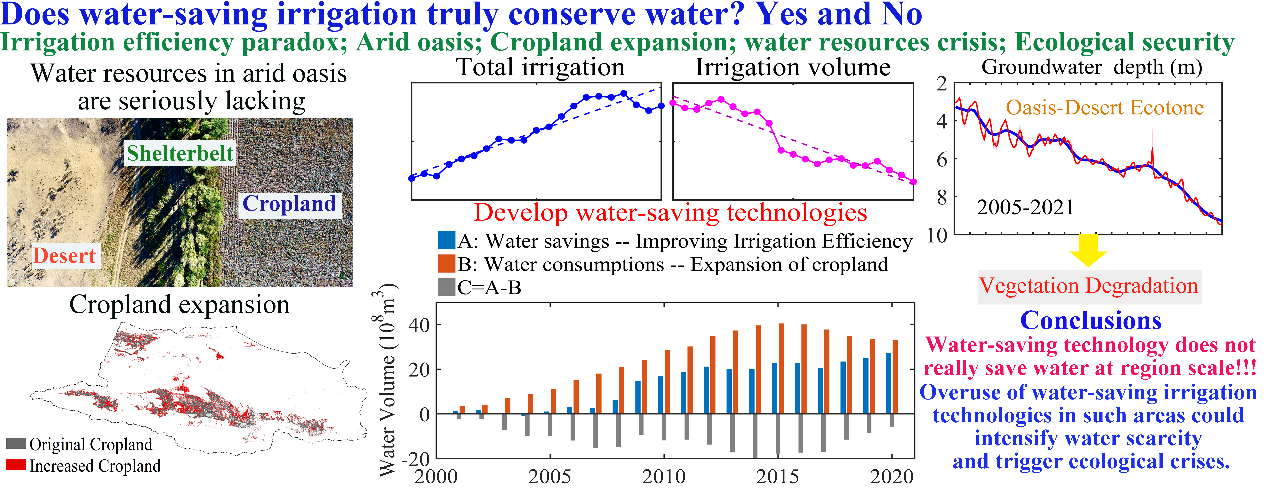 相关成果以“Does water-saving irrigation truly conserve water? Yes and No”为题发表在《Agricultural Water Management》。中国科学院新疆生态与地理研究所博士研究生赵楠为论文第一作者,李彦研究员和郑新军副研究员为通讯作者。该研究得到国家自然科学基金重点项目的支持。
