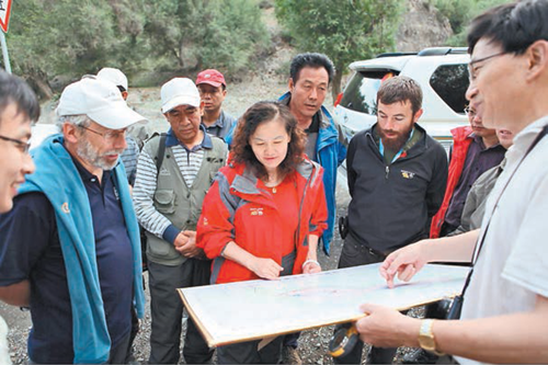 陪同聯合國專家考察新疆天山遺產地時向專家們介紹遺產地概況