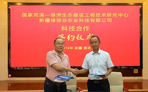 8月29日,中国科学院新疆生态与地理研究所国家荒漠—绿洲生态建设工程技术研究中心与新疆绿冠谷农业科技有限公司在第十届中国科学院—新疆科技合作洽谈会签约,双方将在北疆地区围绕木本油料植物进行相关生态建设与生态产业技术开发、示范及推广应用领域展开合作。