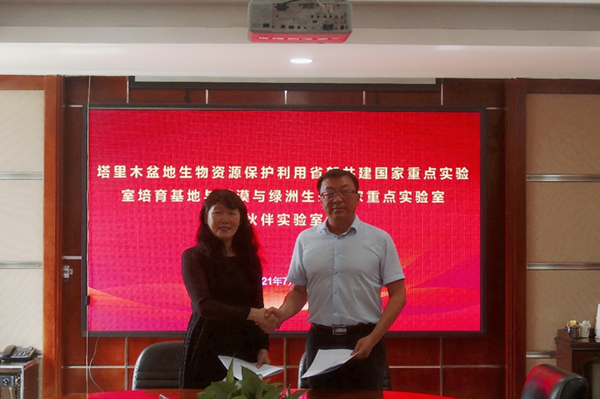 7月5日,中国科学院新疆生态与地理研究所“荒漠与绿洲生态国家重点实验室”与塔里木大学“塔里木盆地生物资源保护利用省部共建国家重点实验室培育基地”签订伙伴实验室协议。未来五年,双方将在师资队伍、人才培养、科学研究、服务社会能力和管理水平等方面开展合作。