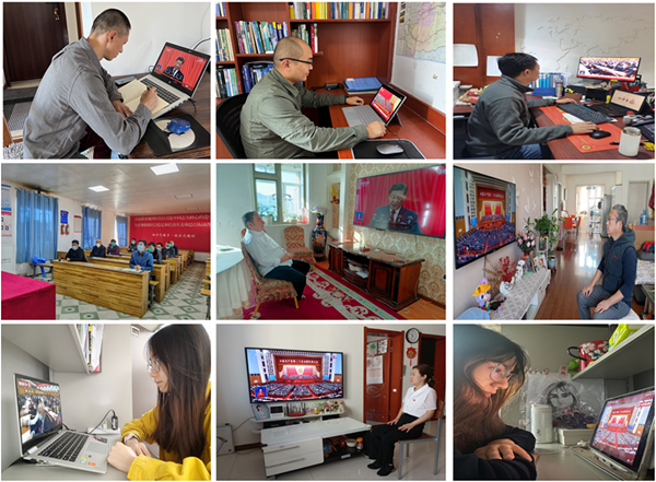 盛会鼓舞人心,报告催人奋进。在实验室、野外站、驻村点、办公室、家里,新疆生地所党员干部职工和研究生自觉佩戴党徽,通过电视、广播、互联网,聚精会神听报告,全神贯注做笔记,线上分享体会、云端凝汇思想,共同感受祖国五年发展的辉煌成就,共同展望中华民族伟大复兴宏伟蓝图。