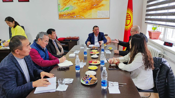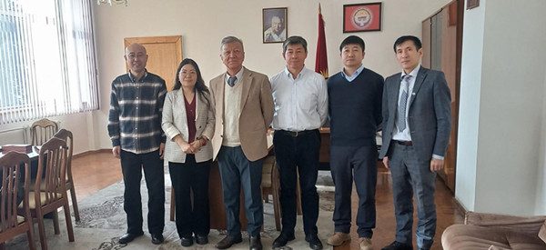 12月19日至23日访问吉尔吉斯斯坦期间,代表团首先参加了由新疆生地所和中亚生态与环境研究中心(比什凯克)等机构联合举办的“中亚生态和水问题:利用现代新技术方法和解决方案”国际论坛。论坛结束后,代表团先后访问了吉尔吉斯斯坦国家科学院、吉科院水问题和水能研究所(简称吉水问题所)、吉科院机械与自动化研究所(简称吉自动化所)和中国驻吉尔吉斯斯坦大使馆政治处(兼科技事务)。吉科院新任院长阿布德拉赫马托夫K.E.对新疆生地所代表团于疫情后的到访表示欢迎,赞赏新疆生地所与吉方开展的科技合作,并对中吉在包括气候变化、灾害预防等研究领域的大型科技项目合作寄予希望。吉水问题所所长琼托耶夫D.T.、吉自动化所所长苏尔坦纳里耶夫B.S.在会见时均表达了希望疫情后尽快重启与新疆生地所的合作,并就合作成果的出版和科技成果转化等内容进行了交流。驻吉使馆政治处主任赵雪莹在听取了代表团对此行的目的和中亚生态与环境研究中心的介绍后,表示将继续支持生地所开展的中吉科技合作。