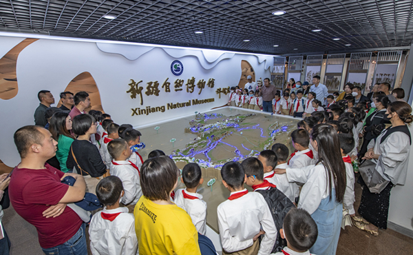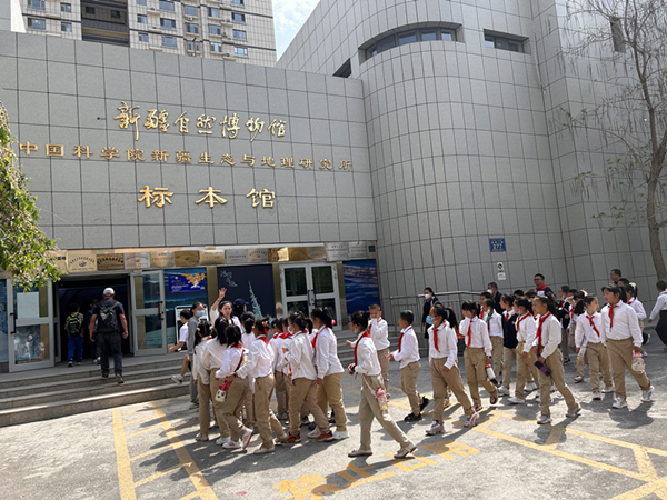 在新疆自然博物馆,来自乌鲁木齐市第70中学、113中学、121中学、市儿童福利院、新市区区委宣传部等多所学校的师生和单位职工参观了博物馆,了解了新疆独特的气候、巍峨山地、潋滟水系、浩瀚荒漠、多彩土壤、缤纷绿洲、殷阜矿产,以及独特的野生动植物标本。部分学生参与了“动手修化石”“博物馆奇妙夜”等活动,纷纷表示受益匪浅。