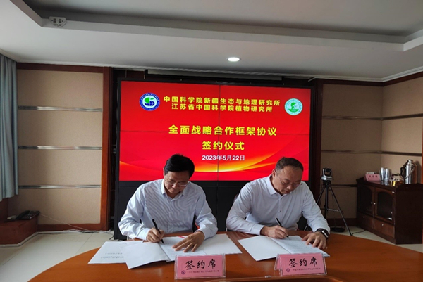 双方围绕干旱区植物种质资源收集保育、援疆资源利用、国家植物园建设、植物保护与利用等方面进行了深入交流,并签订了全面战略合作框架协议。