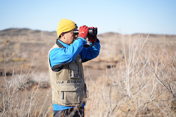 从学生到老师,三十多年来,杨维康在中国干旱区濒危野生动物研究与保护事业中逐渐成长为团队PI。重点开展了第二次青藏高原综合科学考察研究和新疆第三次科学考察有关项目。在第二次青藏科考中,承担了“新藏公路、青藏公路与中巴公路沿线野生动物资源调查与道路对野生动物影响评估”的任务。心系“国家事”,肩扛“国家责”,他带领团队常年奔赴青藏高原和帕米尔高原,开展野生动物资源调查工作,为濒危野生动物的保护持续奋斗。克服高寒缺氧的自然条件,他先后组织和参加了20余次野外考察,获得了藏羚羊、藏野驴、马可波罗盘羊和北山羊等濒危物种的重要数据,每年在野外开展考察工作都超过了100天,不断推进生态文明建设、推动绿色发展在新疆的坚实步伐。