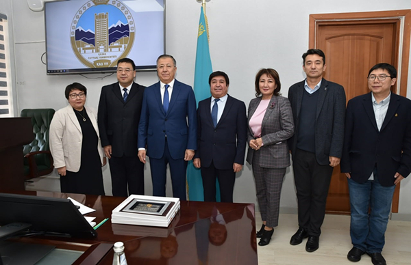 吉力力 阿不都外力等与哈萨克斯坦阿拉法拉比国立大学校长Zhanseit Tuimebayev等合影