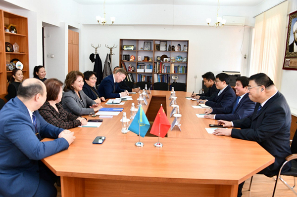 吉力力 阿不都外力等与哈萨克斯坦阿拉法拉比国立大学副校长Zh.N. Aitzhanova等座谈交流