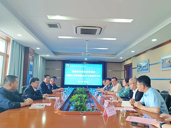 5月25日,国家林草局科技司一级巡视员(主持工作)李世东和创新处处长程强来访中国科学院新疆生态与地理研究所。新疆林科院党委书记、副院长王天斌和副院长马庆国以及自治区林草局科技处处长程志峰陪同调研。新疆生地所所长张元明主持会议。
