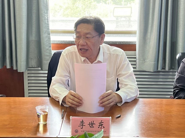 张元明对李世东一行的到来表示欢迎,他介绍了研究所的基本情况、研究领域、全国重点实验室组建及“伊犁-吐鲁番”国家植物园的创建工作,并重点汇报了研究所在荒漠化防治、草原生态保护与修复方面所做的工作。