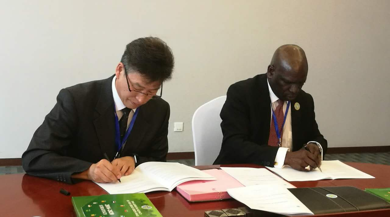 2017年雷加强与泛非绿色长城组织秘书处签订合作备忘录。受访者供图