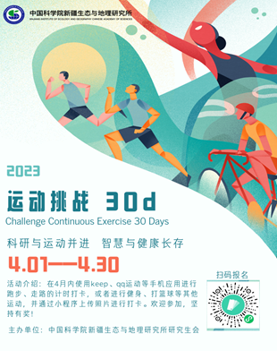 为了提升新疆生态与地理研究所老师同学们的身体素质,营造良好的活动氛围,增加研究所同学们的交流,2023年4月,新疆生态与地理研究所举办了为期1个月的运动打卡活动。