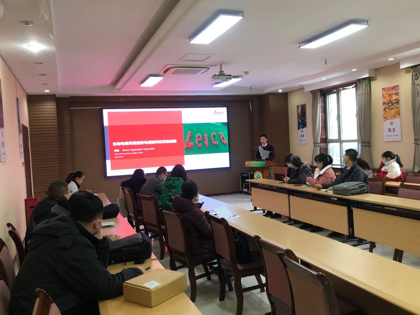 2021年3月10-12日,新疆生态与地理研究所所级公共技术中心开展了一期“电镜技术及应用”培训班。本次培训班邀请了赛默飞世尔科技(中国)有限公司高级应用工程师李红周和徕卡仪器有限公司高级工程师程路分别就聚焦离子束扫描电子显微镜技术及透射电镜样品前处理装置进行了详细的讲解。来自全疆各地十余家单位的40多名科研教师、学生及专业技术人员参加了培训。