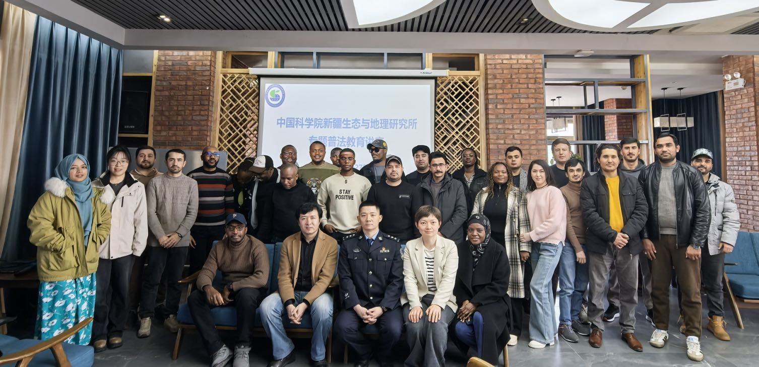 为进一步提升研究所外籍人员的法治素养和安全防范意识,3月27日下午,新疆生地所研究生教育处联合所团委,特邀乌鲁木齐市公安局出入境管理支队彭宽警官开展专题法治教育讲座。本次培训由研究生教育处副处长邹婷主持,40余名外籍博士后、国际学生及研究人员到场参训。